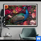 Leinwandbild | Prachtvoller Pfau und Blüten | Schmal