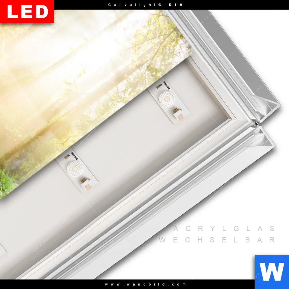 LED-Glasbild mit austauschbarem Acrylglas-Druck (Wechselbild)