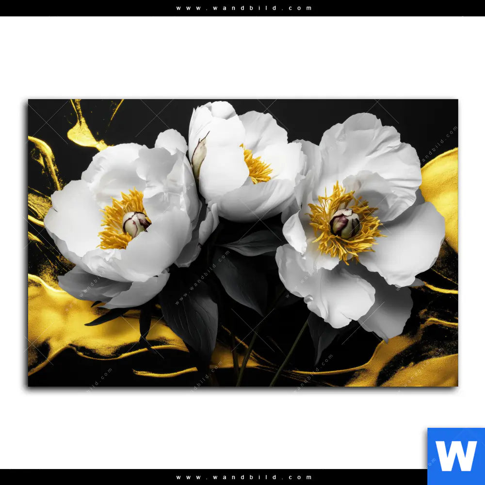 Leinwandbild | Weiße Blumen mit Gold | Querformat