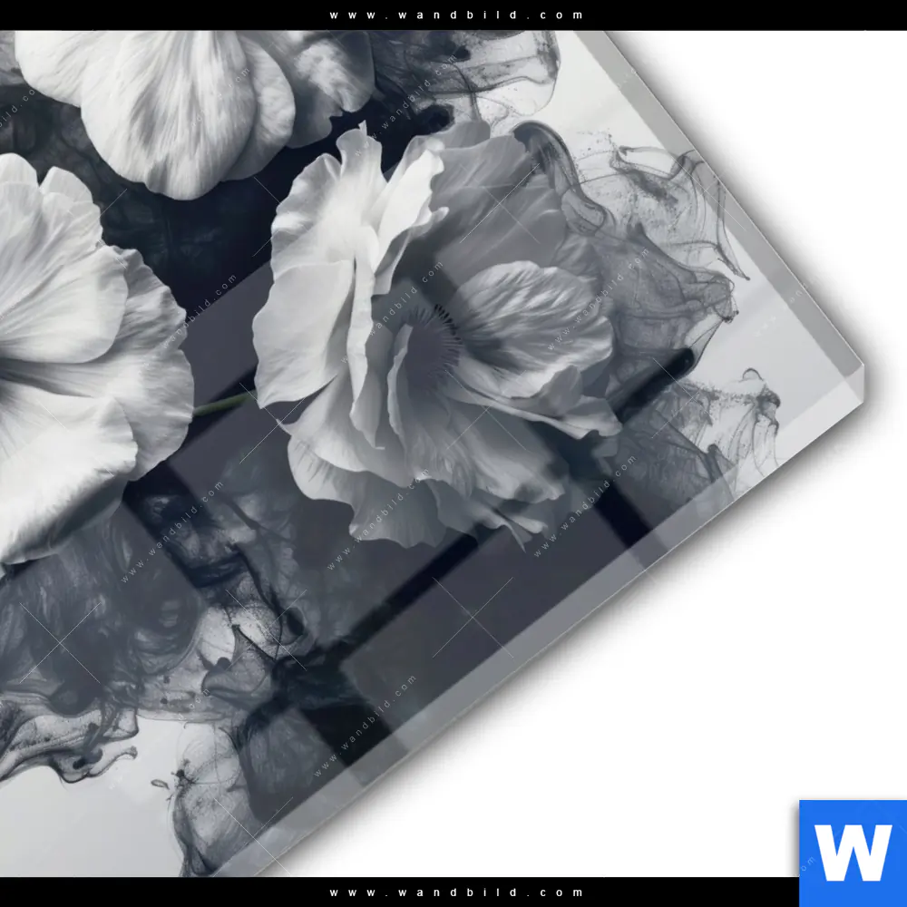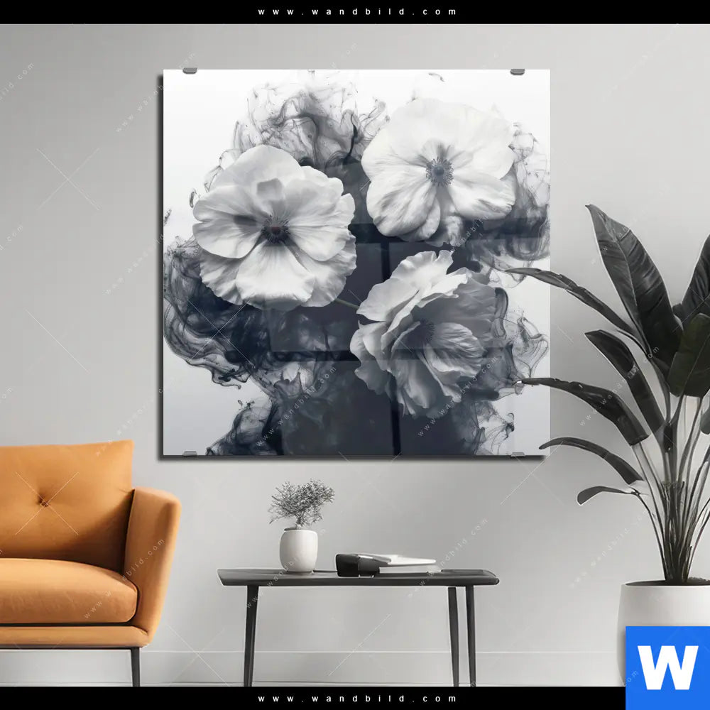 Acrylglasbild | Blumen im schwarzen Farbnebel | Quadrat