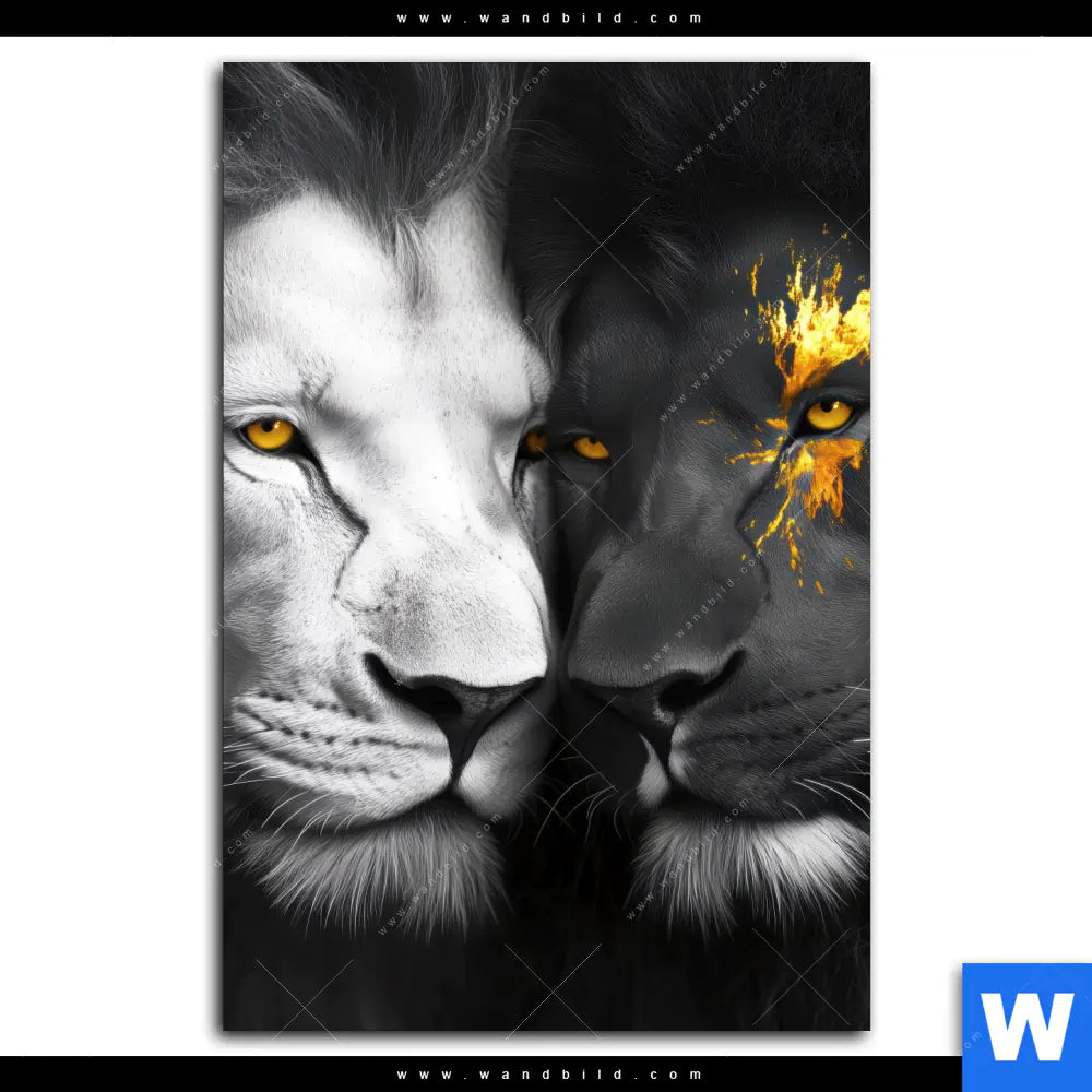 Acrylglasbild | Zwei Löwen Schwarz & Weiß | Hochformat