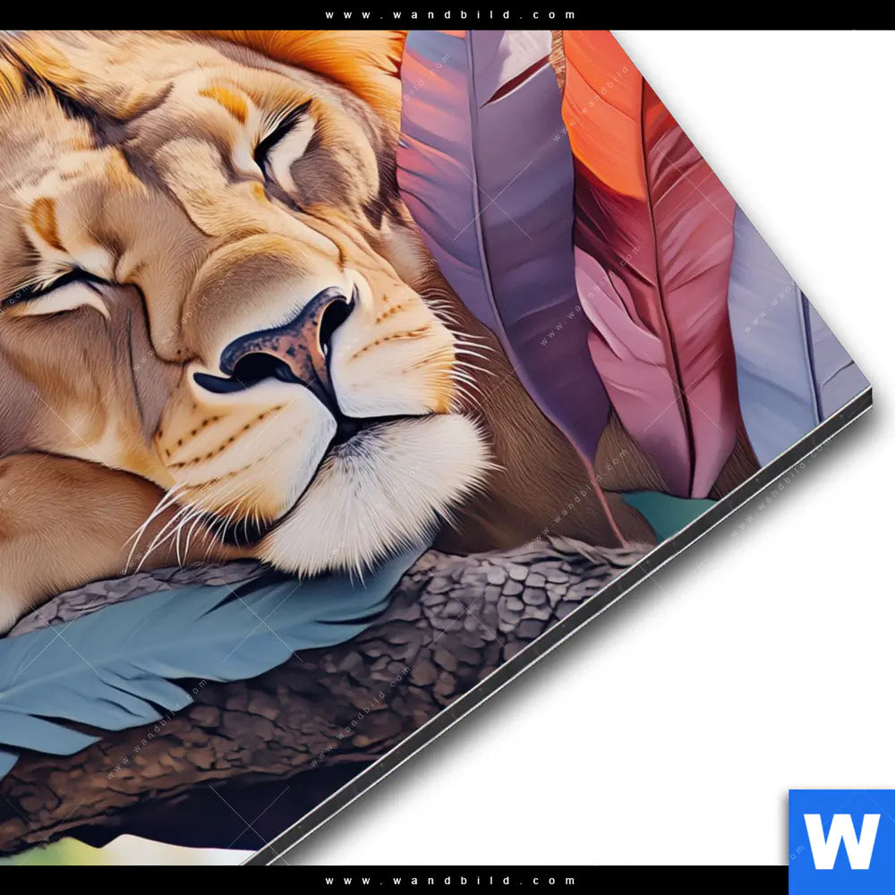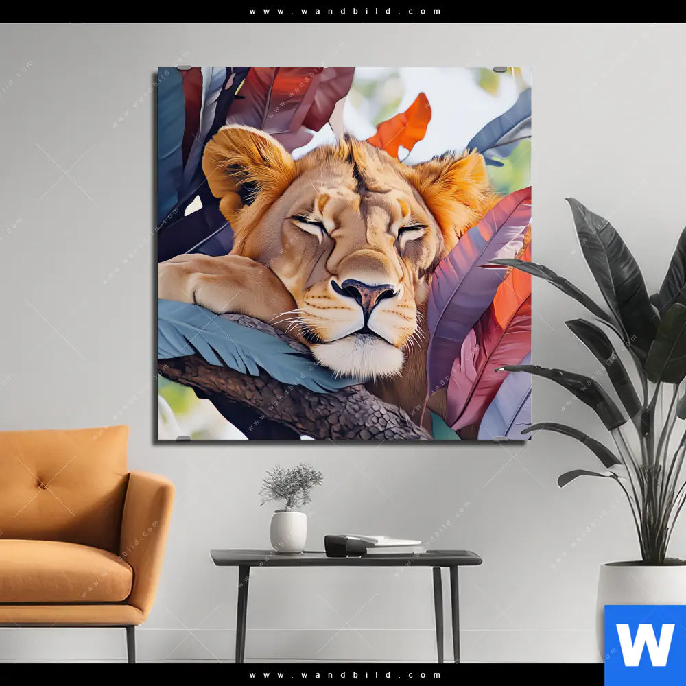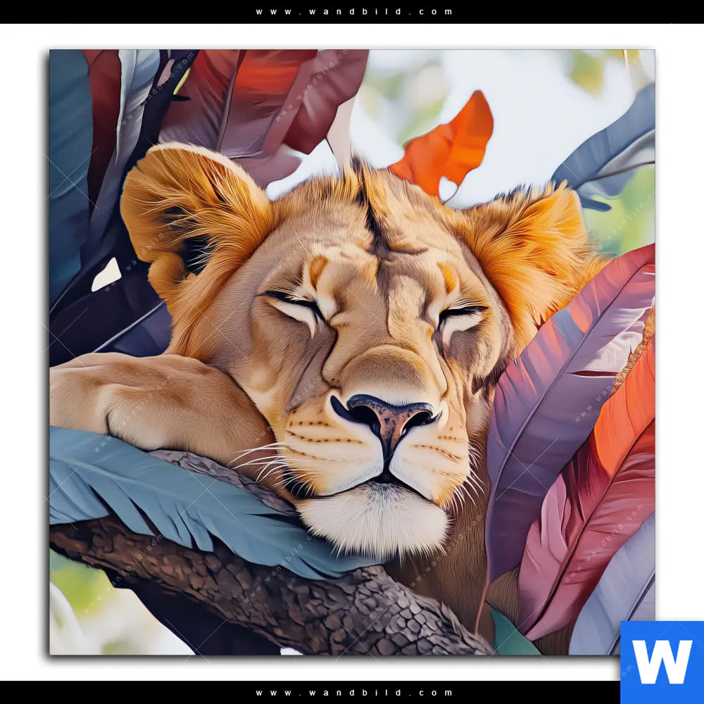 Alu-Dibond Bild | Träumender Löwe im Baum | Quadrat