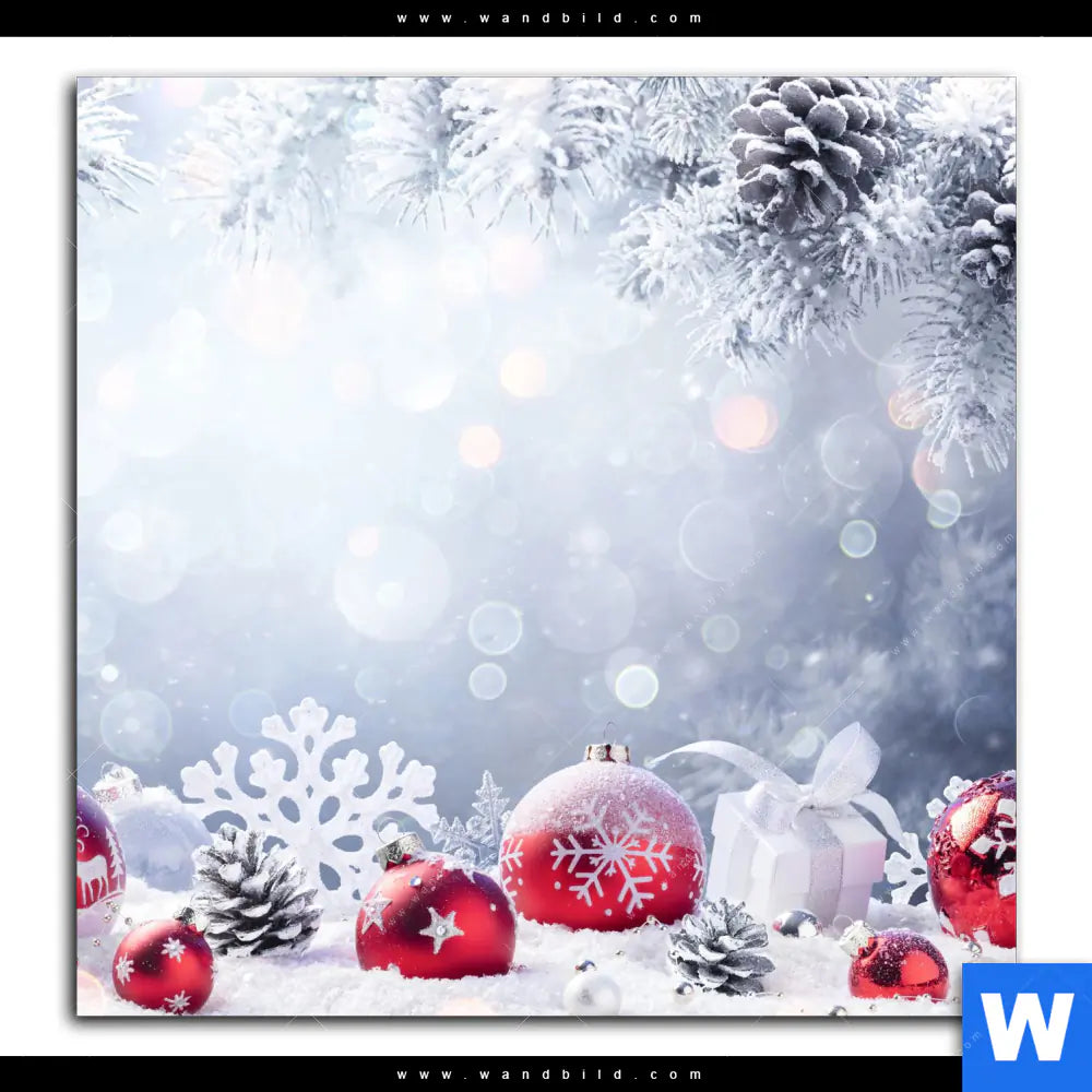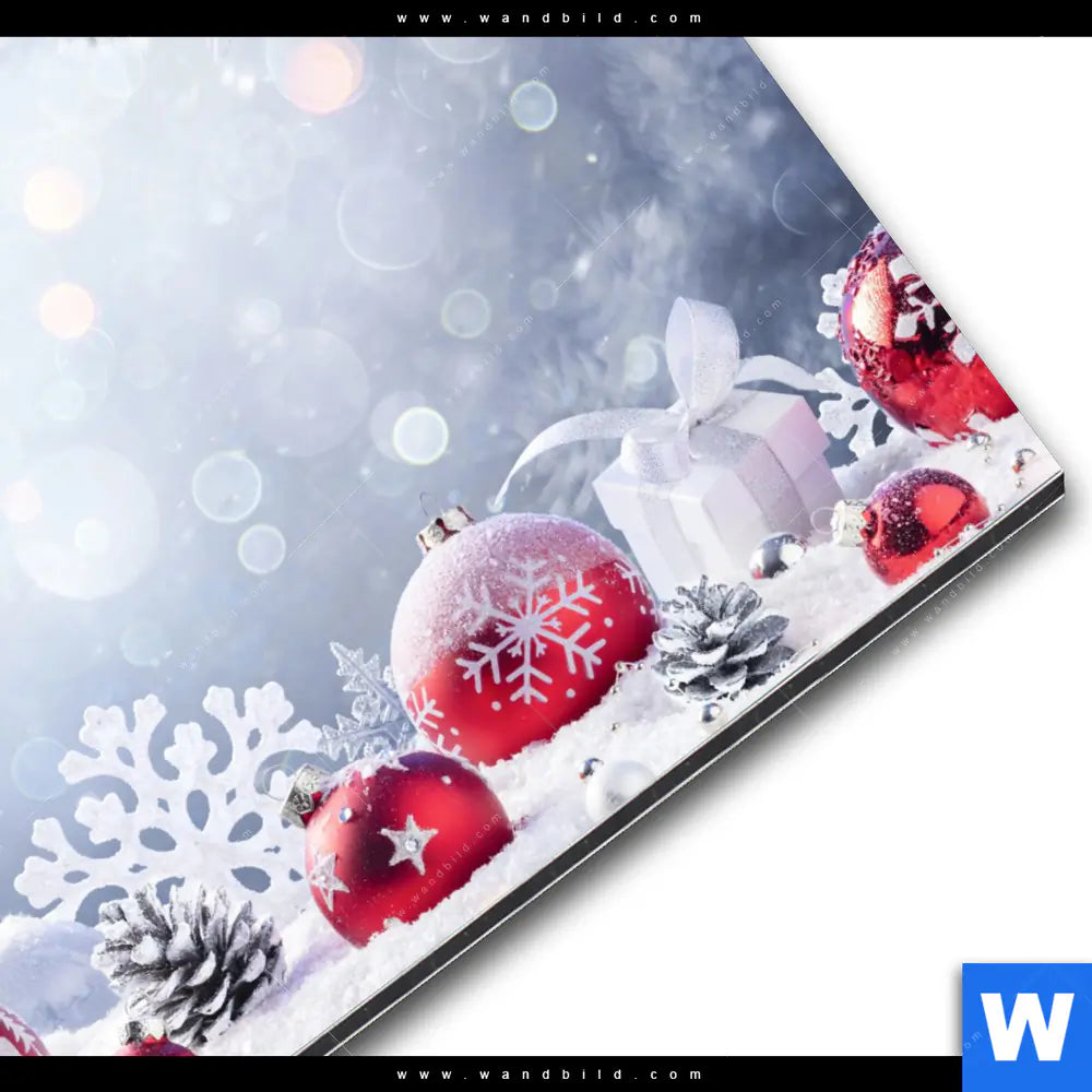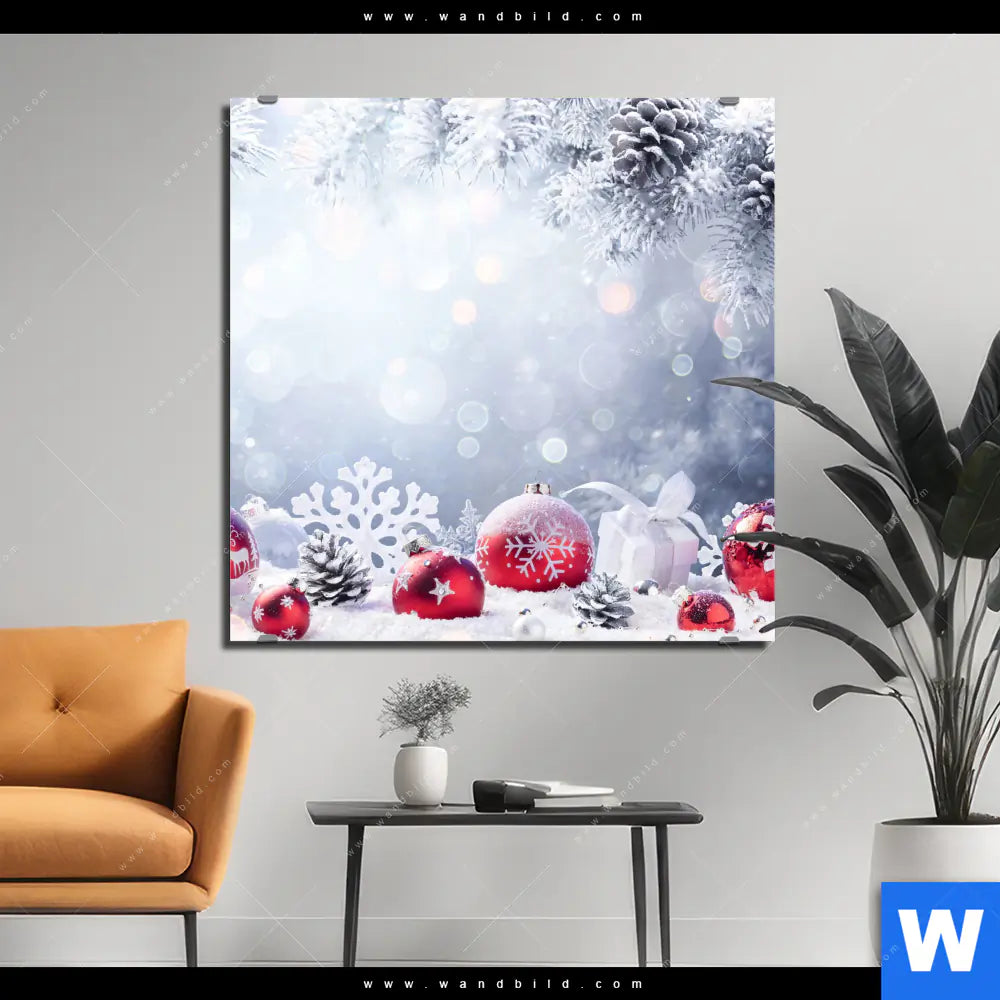 Alu-Dibond Bild | Weihnachtskugeln im Winterwunderland | Quadrat