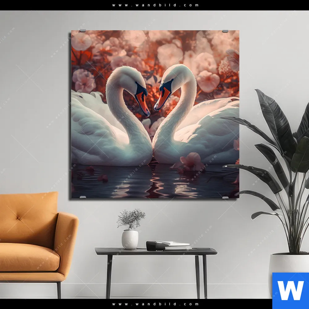 Alu-Dibond Bild | Zwei Schwäne im Wasser | Quadrat