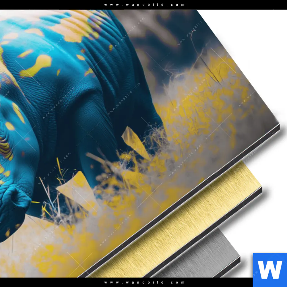 Aluminiumbild gebürstet | Nashorn - Farben der Wildness | Querformat