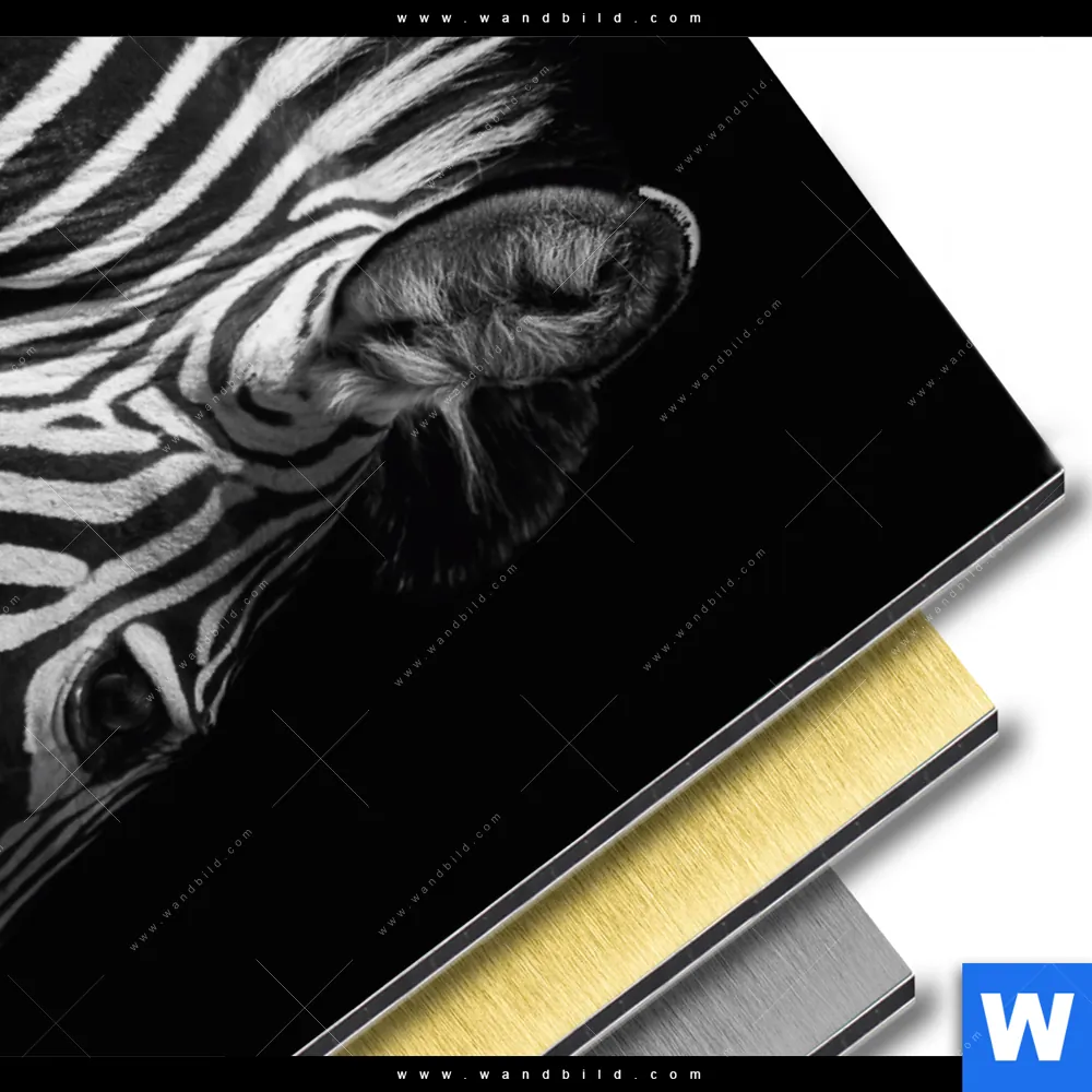 Aluminiumbild gebürstet | Zebra Schwarzweiß | Hochformat