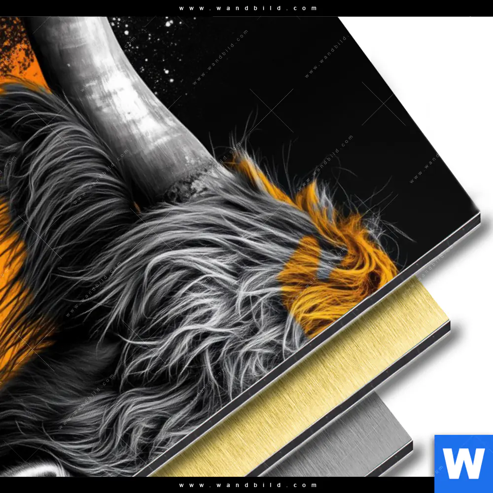 Aluminiumbild gebürstet | Zotteliges Hochland-Rind | Hochformat