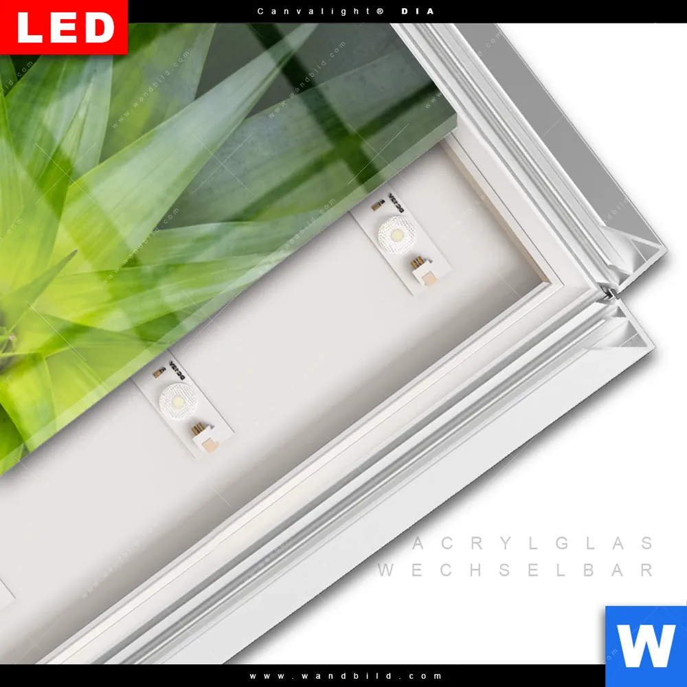 LED-Glasbild mit austauschbarem Acrylglas-Druck (Wechselbild)