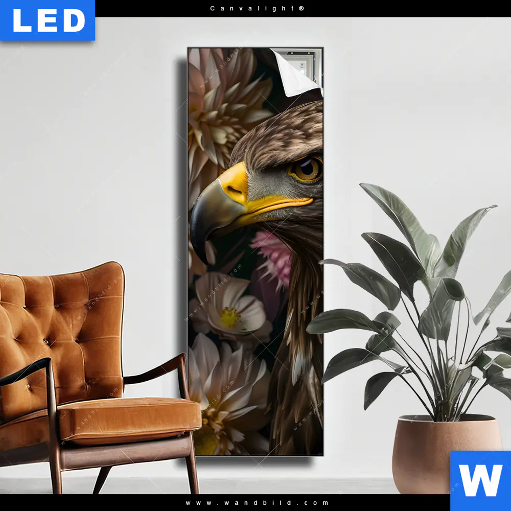 Canvalight® Leuchtbild | Florale Eleganz und Adlerblick | Schmal