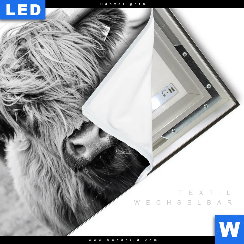Canvalight® TEX Leuchtbild | Rind im Hochland | Quadrat