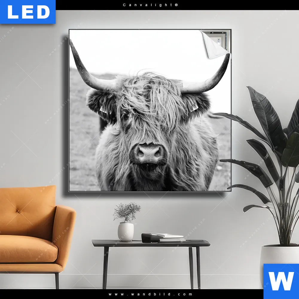 Canvalight® Leuchtbild | Rind im Hochland | Quadrat