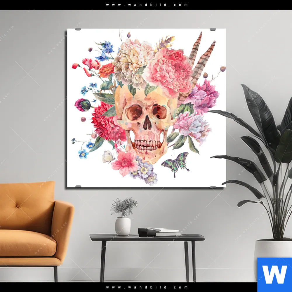 Acrylglasbild | Schädel im Boho Stil | Quadrat