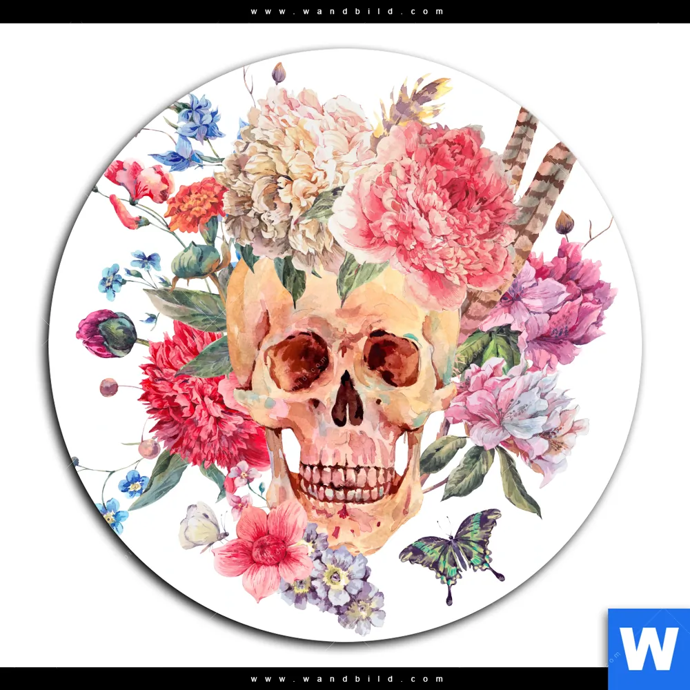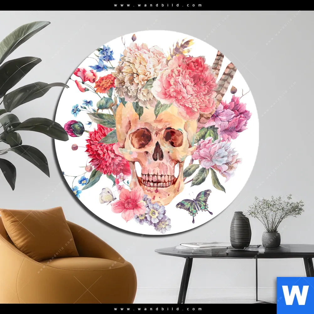 Acrylglasbild | Schädel im Boho Stil | Rund