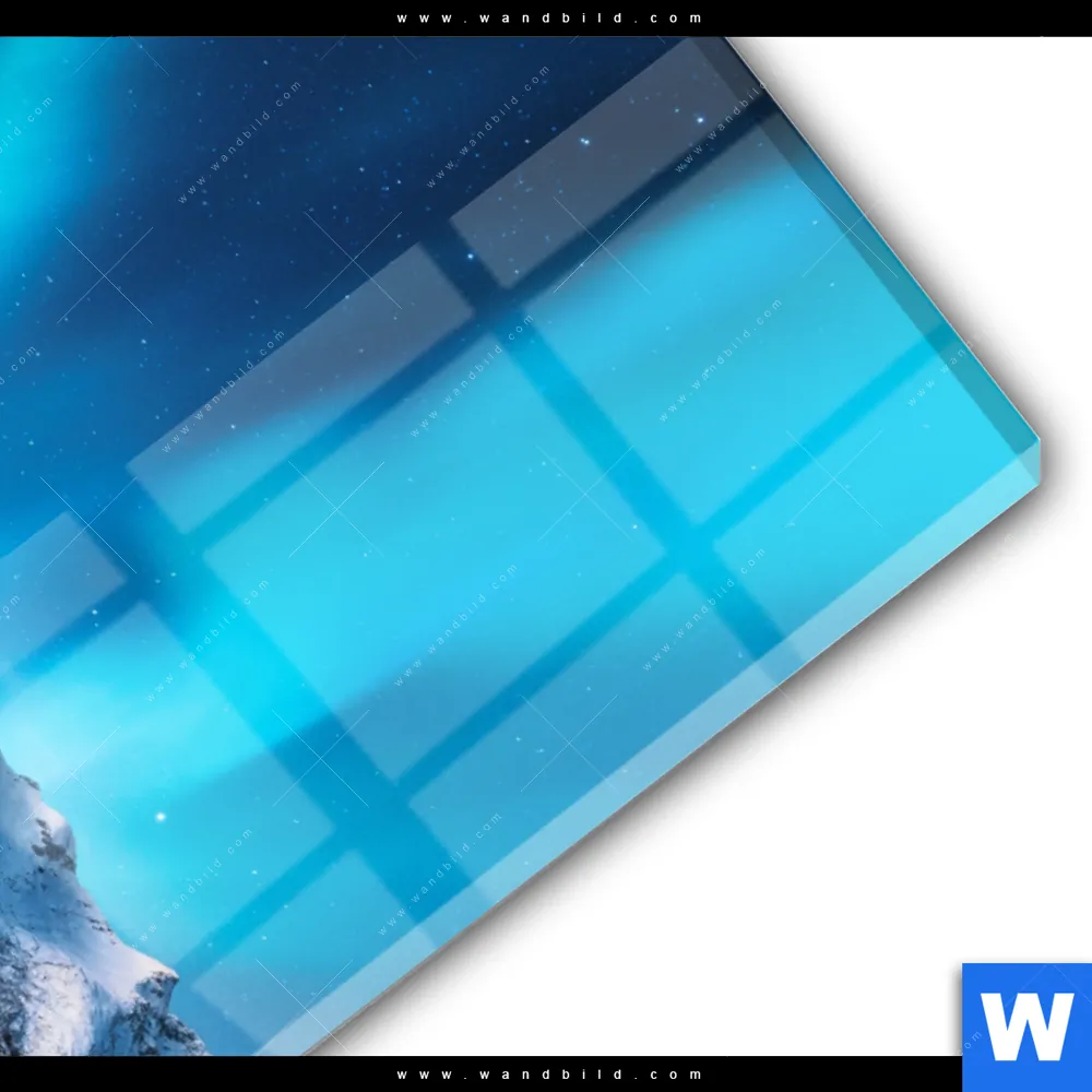 Acrylglasbild | Nordlichter und schneebedeckte Berge | Hochformat