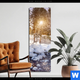 Acrylglasbild | Schneebedeckte Landschaft am Fluss | Hochformat