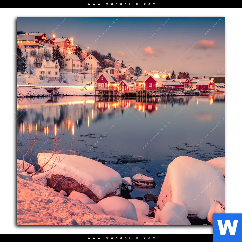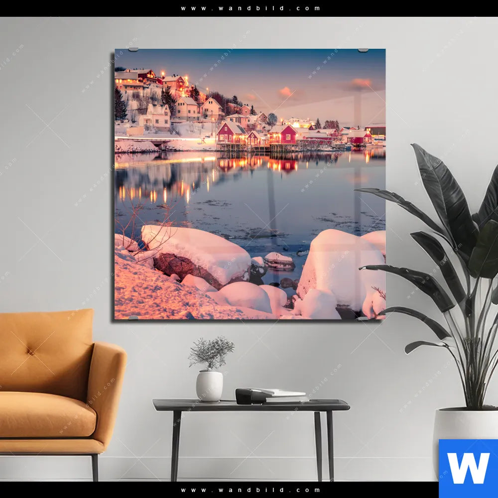 Acrylglasbild | Skandinavische Stadt bei Nacht | Quadrat