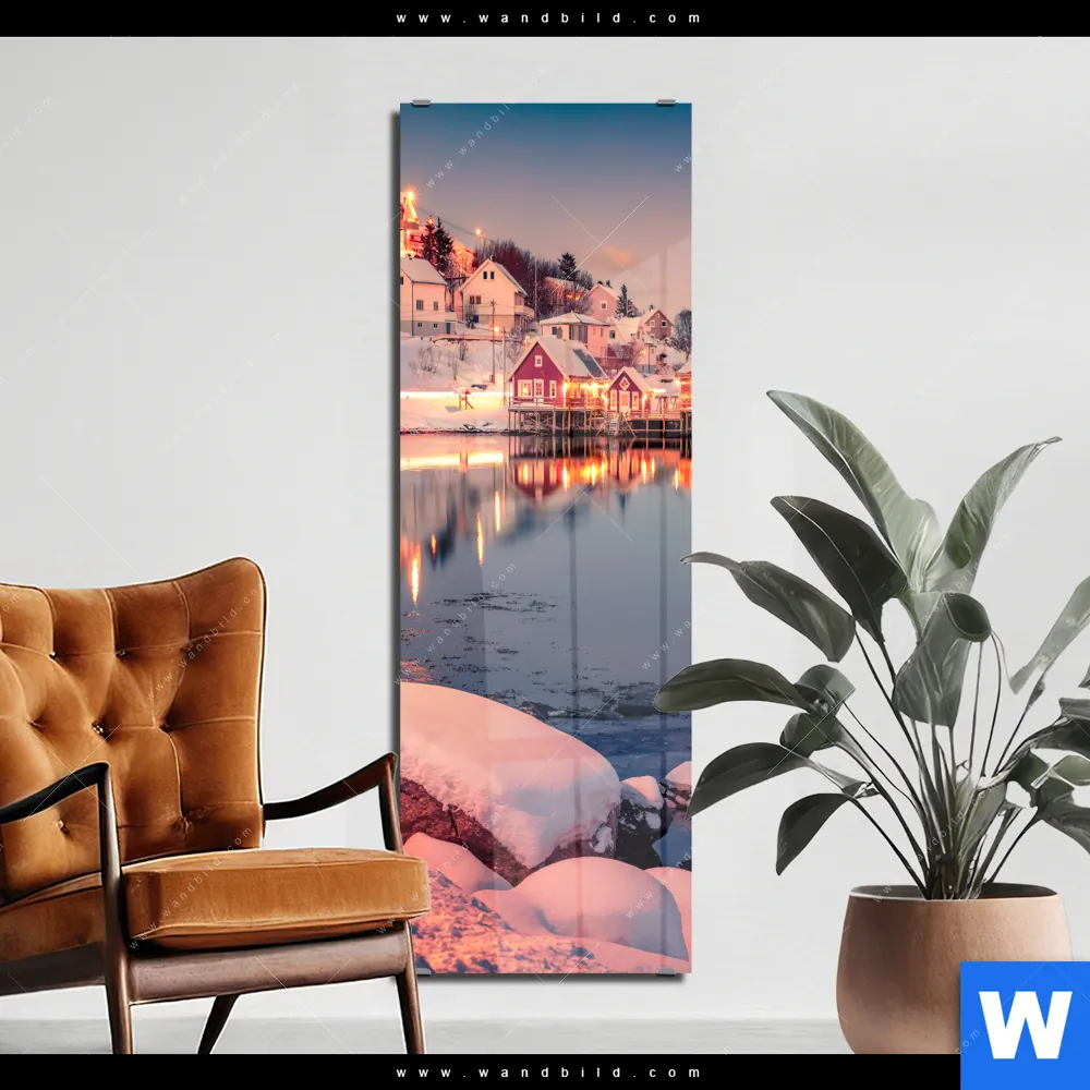Acrylglasbild | Skandinavische Stadt bei Nacht | Schmal