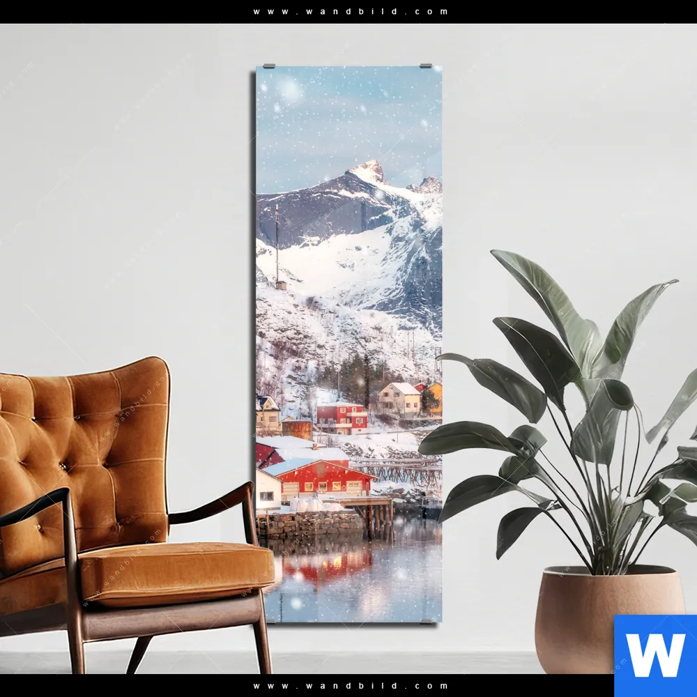 Acrylglasbild | Skandinavisches Dorf im Schnee | Schmal