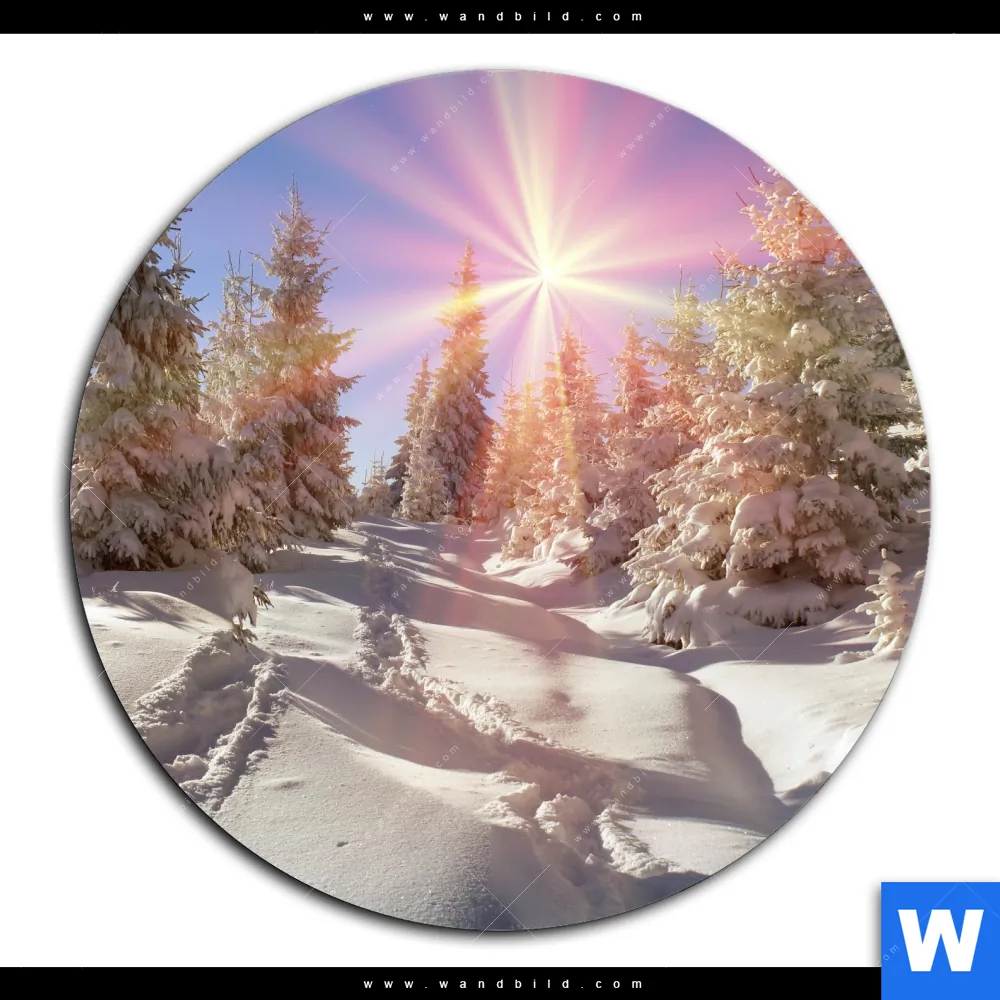 Acrylglasbild | Verschneiter Wald | Rund