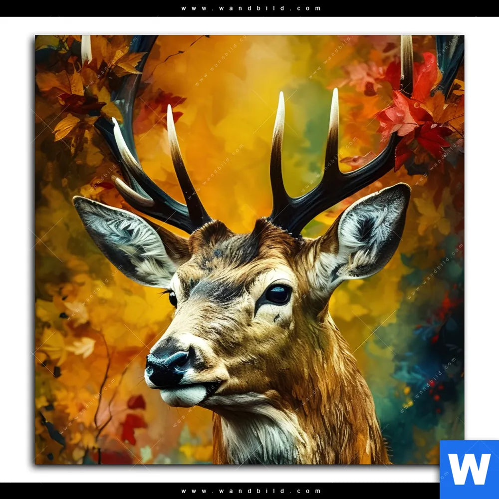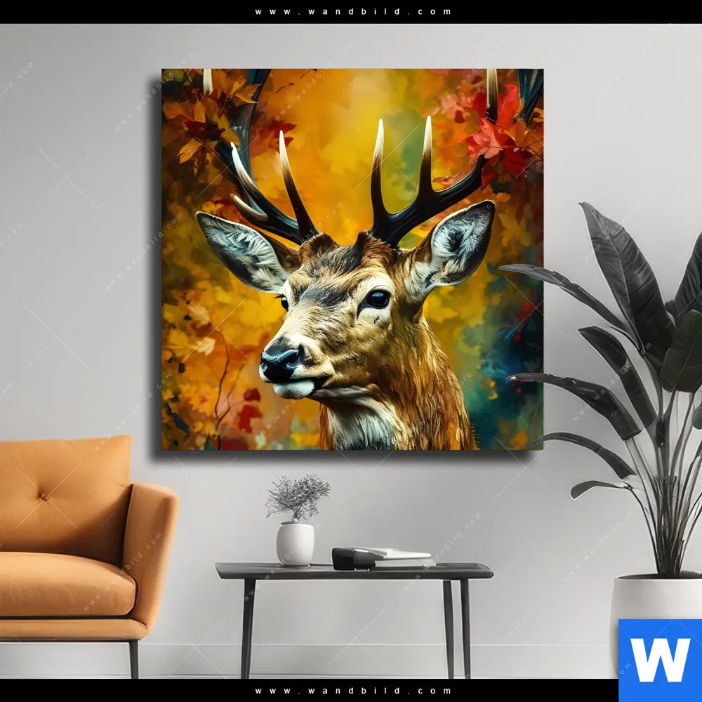 Leinwandbild | Rothirsch im Herbstwald | Quadrat
