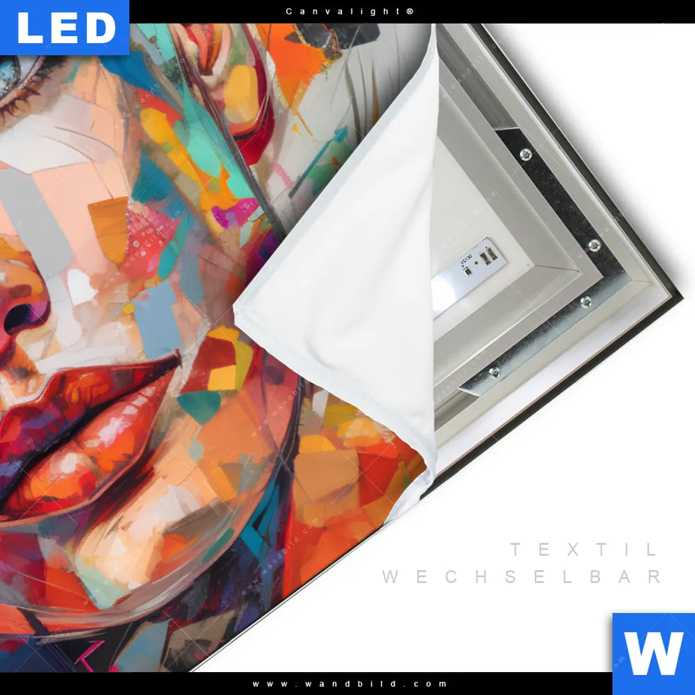 Canvalight® TEX Leuchtbild | Abstraktes Frauenporträt Aurora | Querformat