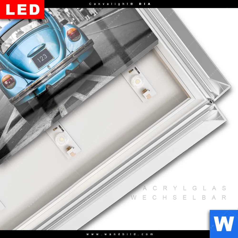 LED-Glasbild mit austauschbarem Acrylglas-Druck (Wechselbild)