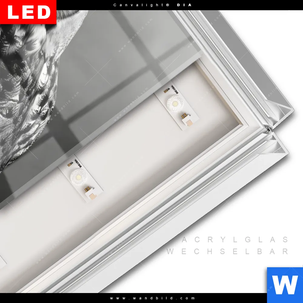 LED-Glasbild mit austauschbarem Acrylglas-Druck (Wechselbild)