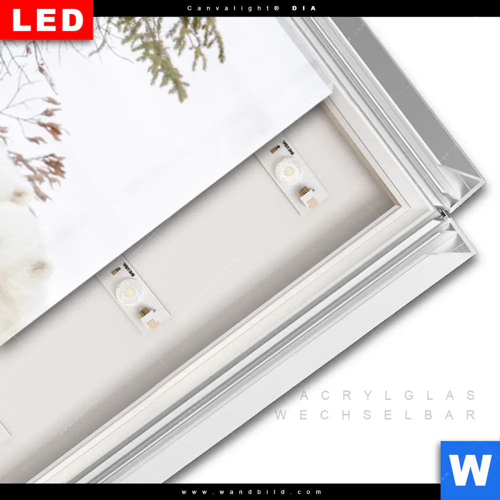 LED-Glasbild mit austauschbarem Acrylglas-Druck (Wechselbild)