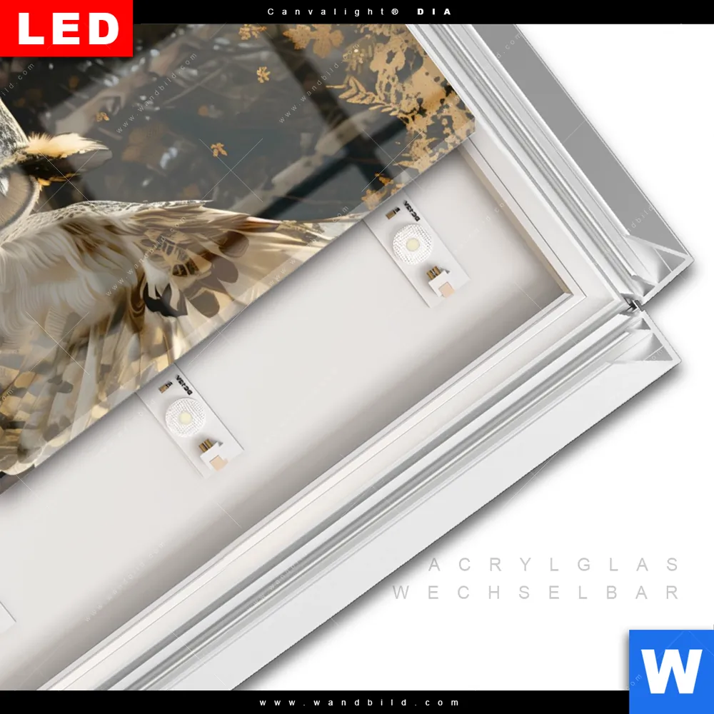 LED-Glasbild mit austauschbarem Acrylglas-Druck (Wechselbild)