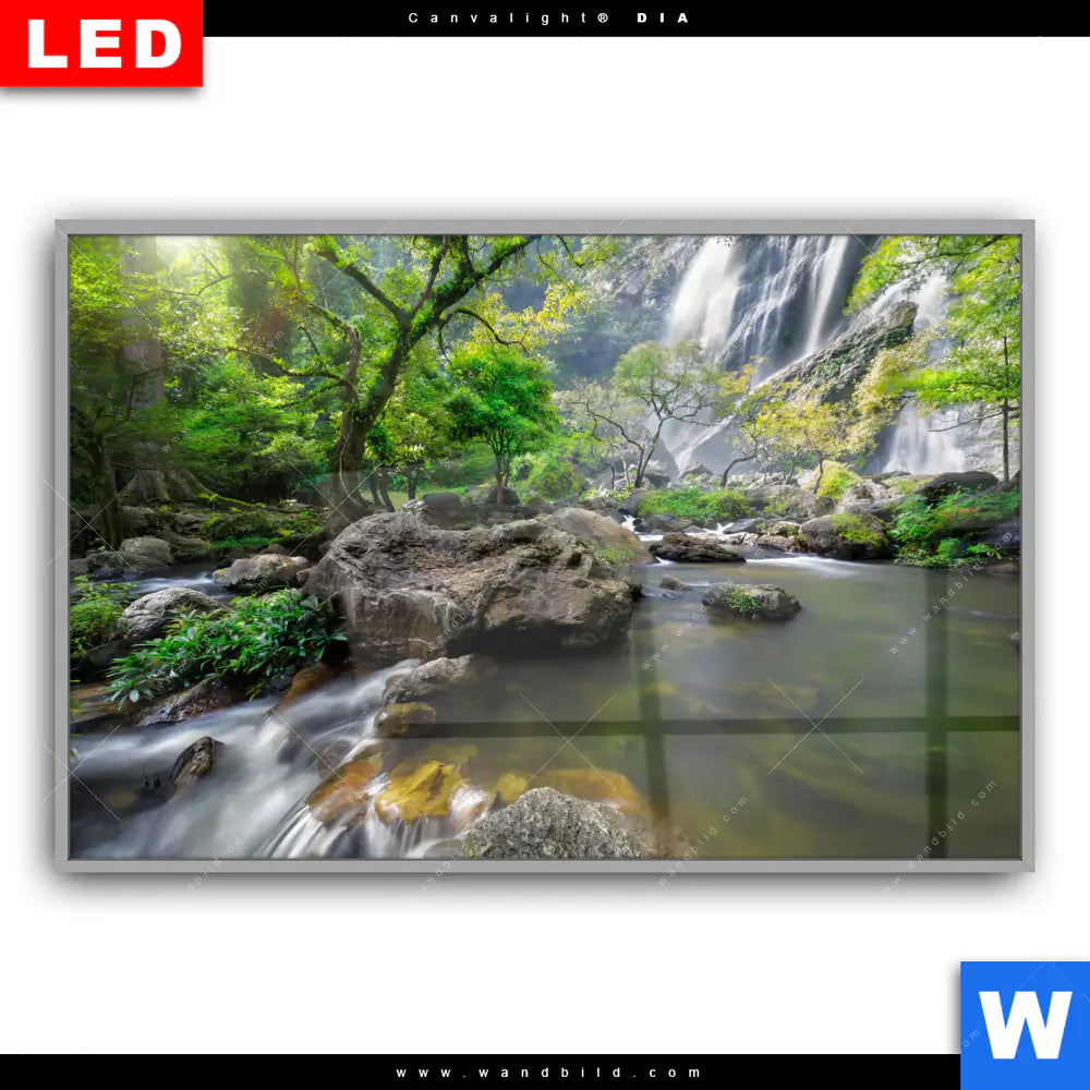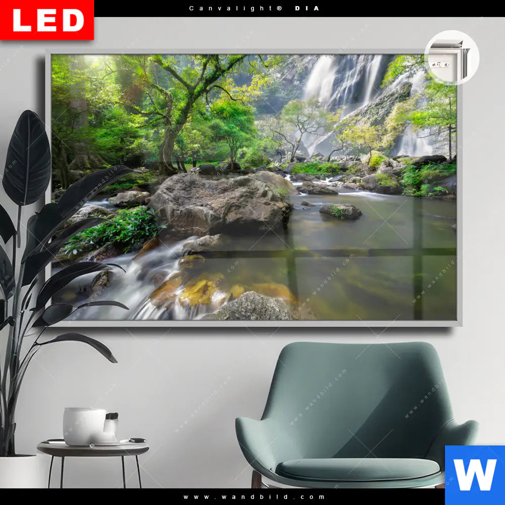 Canvalight® DIA Leuchtbild | Felsenbach im Regenwald | Querformat
