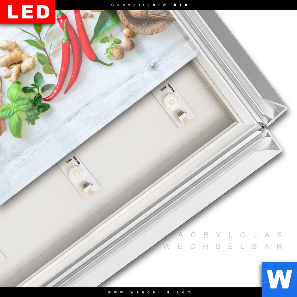 LED-Glasbild mit austauschbarem Acrylglas-Druck (Wechselbild)