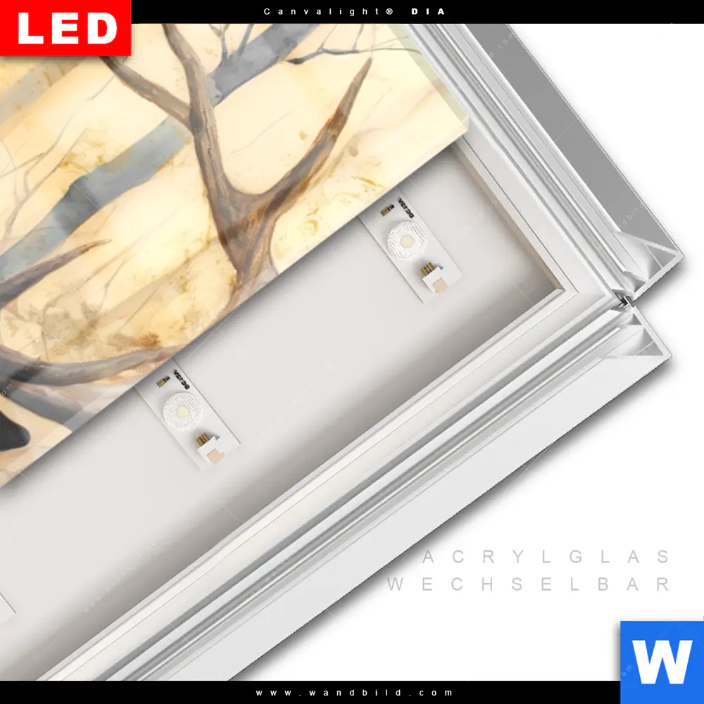 LED-Glasbild mit austauschbarem Acrylglas-Druck (Wechselbild)
