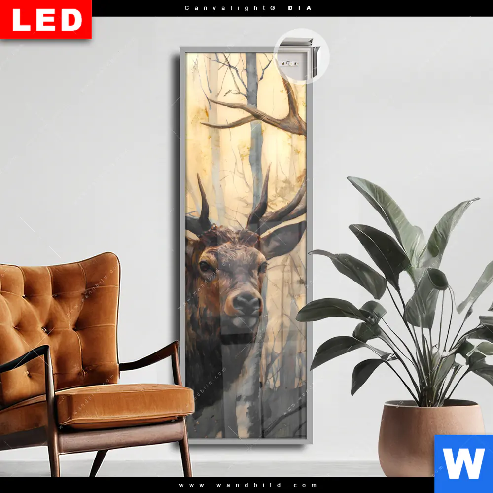 Canvalight® DIA Leuchtbild | Hirsch im Morgenlicht | Schmal