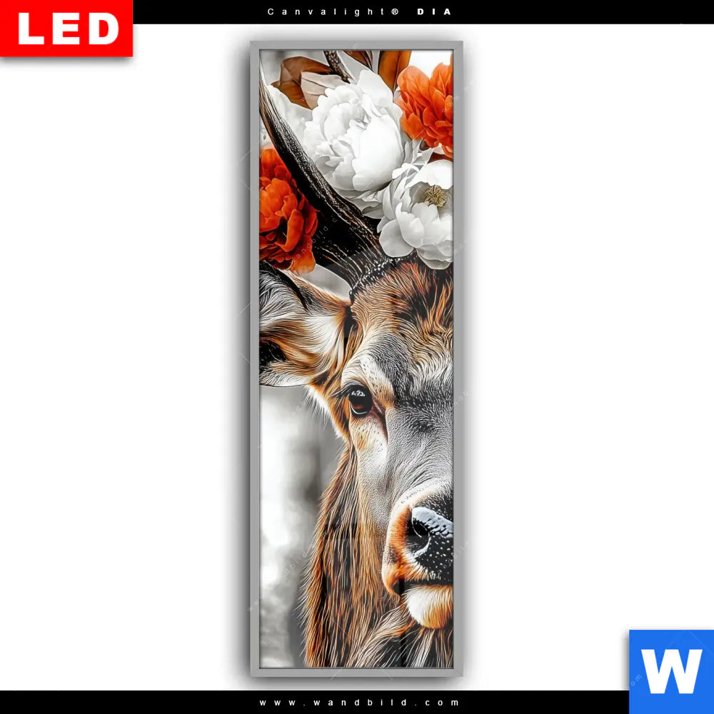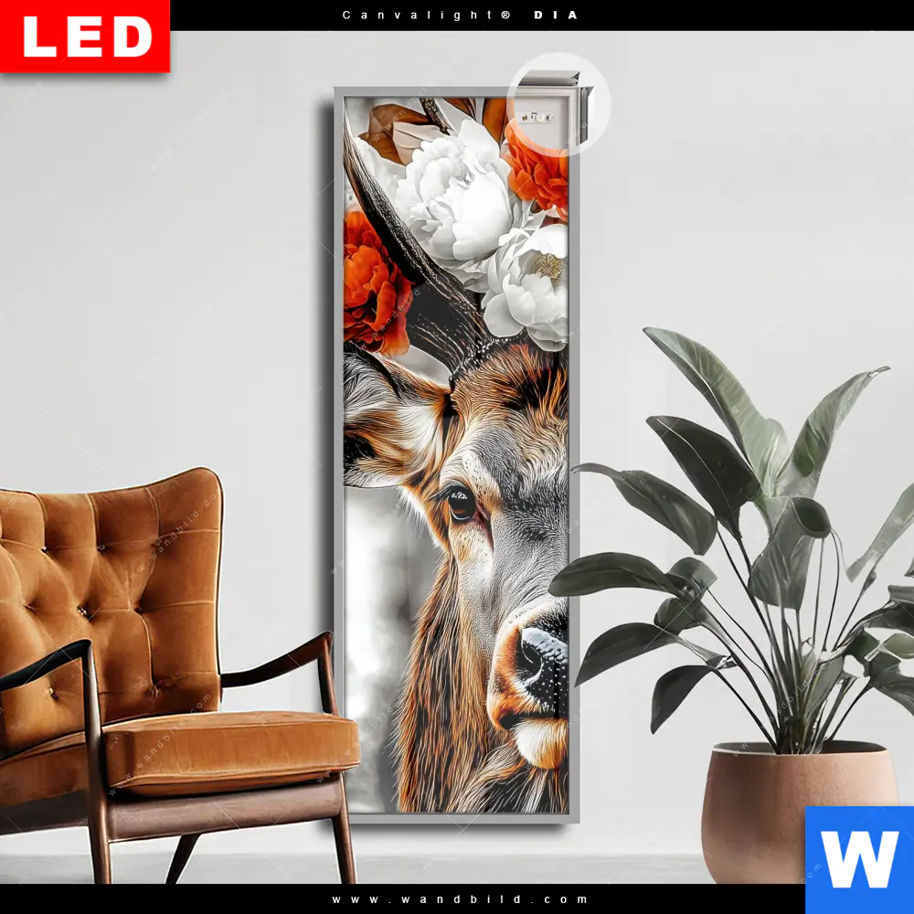 Canvalight® DIA Leuchtbild | Hirsch mit Blumenkrone | Schmal