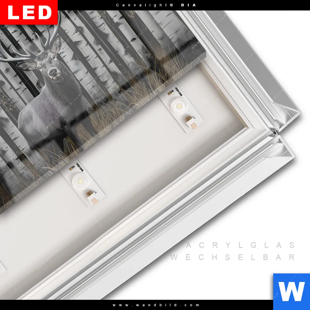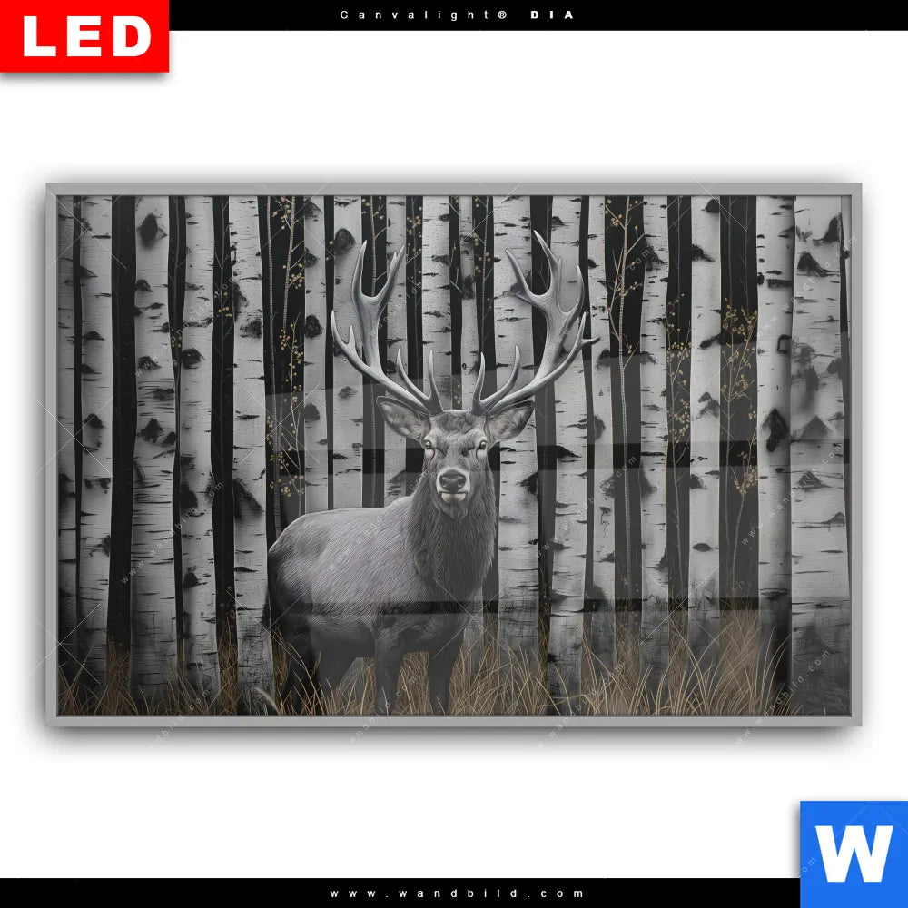 Canvalight® DIA Leuchtbild | Hirschporträt vor Birken | Querformat