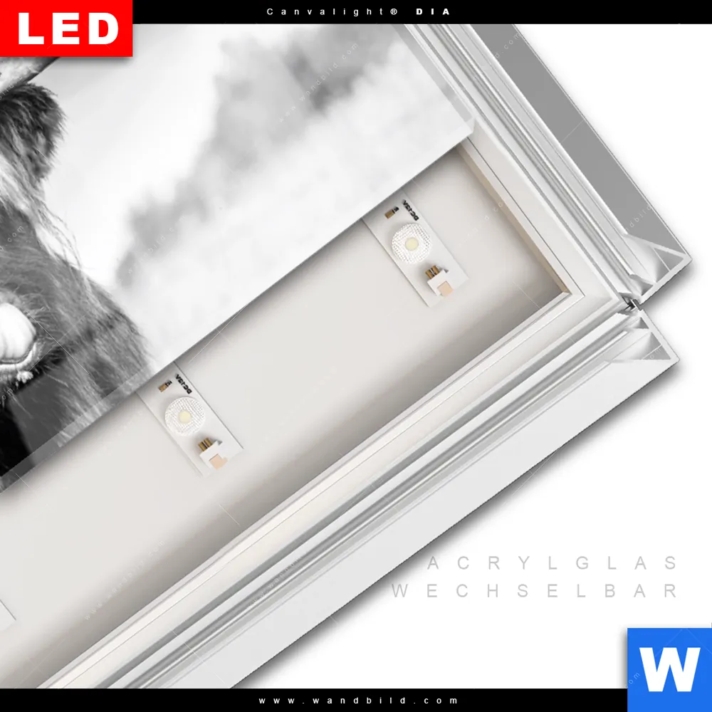 LED-Glasbild mit austauschbarem Acrylglas-Druck (Wechselbild)