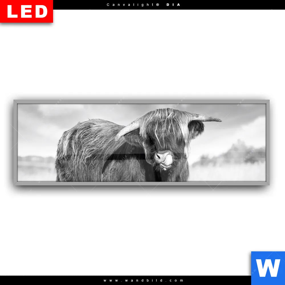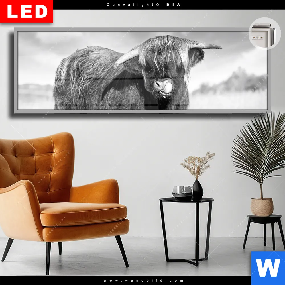 Canvalight® DIA Leuchtbild | Hochlandkuh auf einer Wiese | Panorama