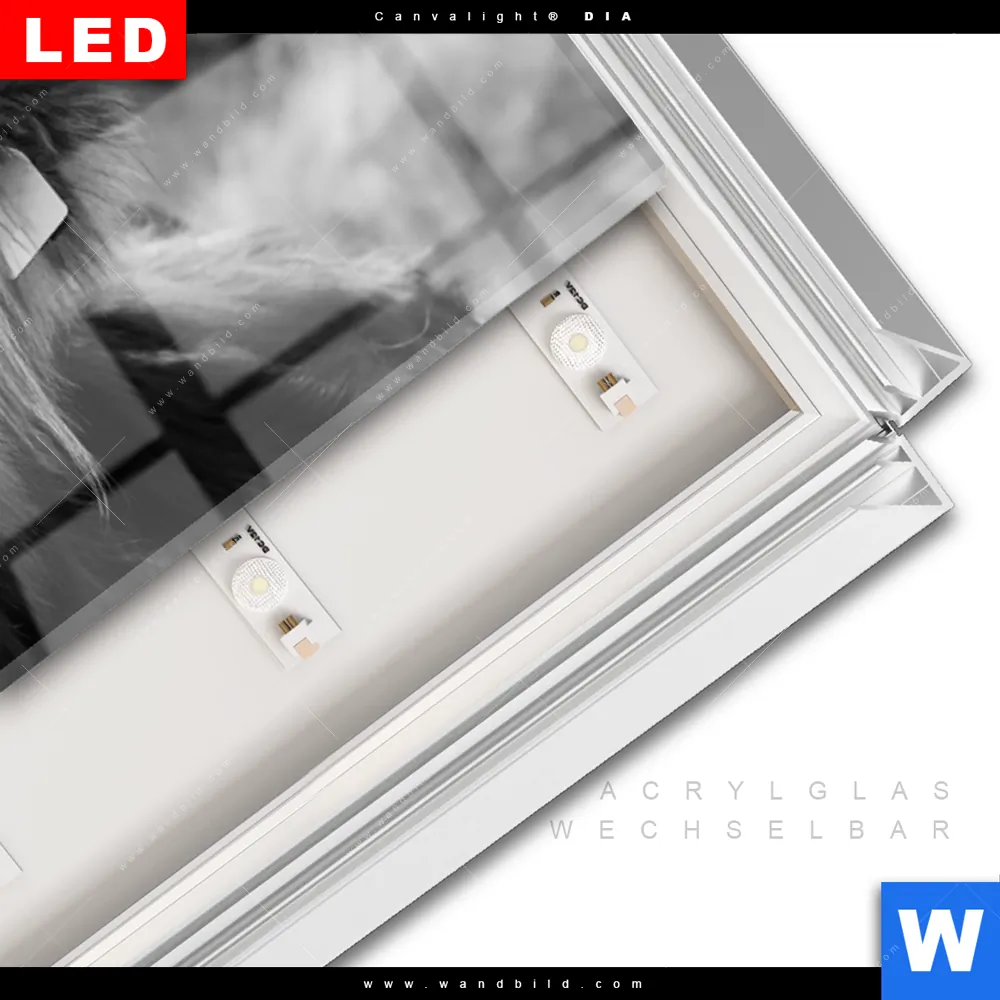 LED-Glasbild mit austauschbarem Acrylglas-Druck (Wechselbild)