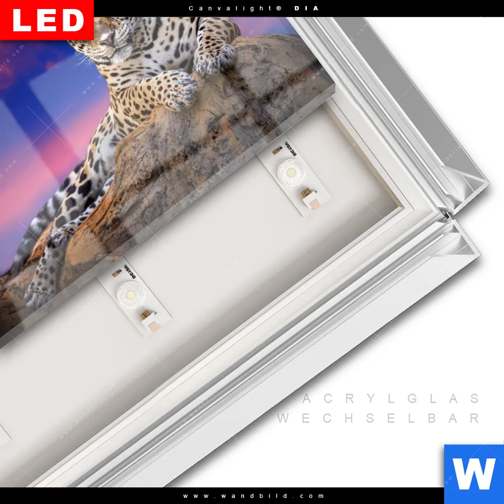 LED-Glasbild mit austauschbarem Acrylglas-Druck (Wechselbild)