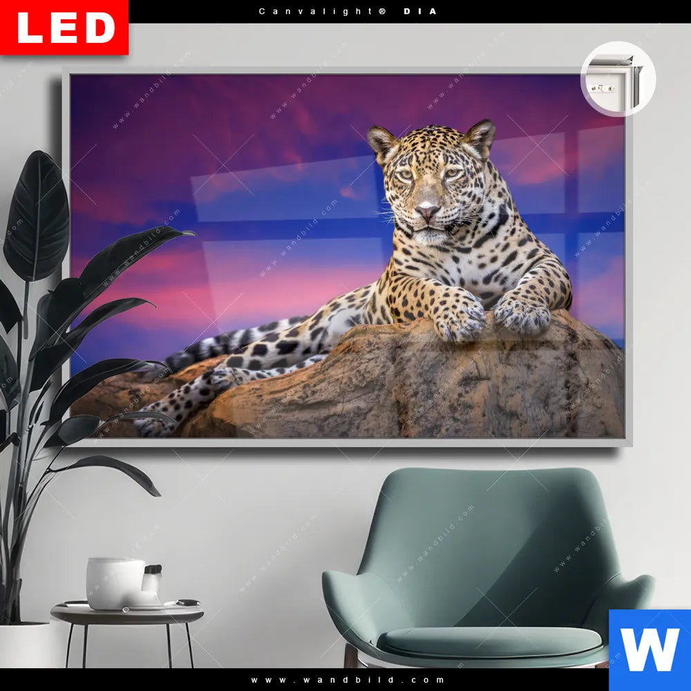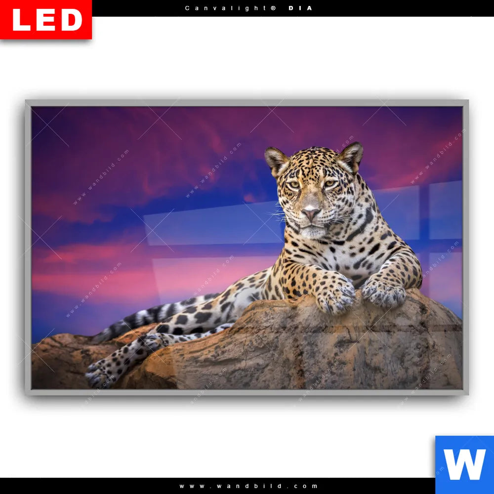 Canvalight® DIA Leuchtbild | Jaguar auf Felsen | Querformat