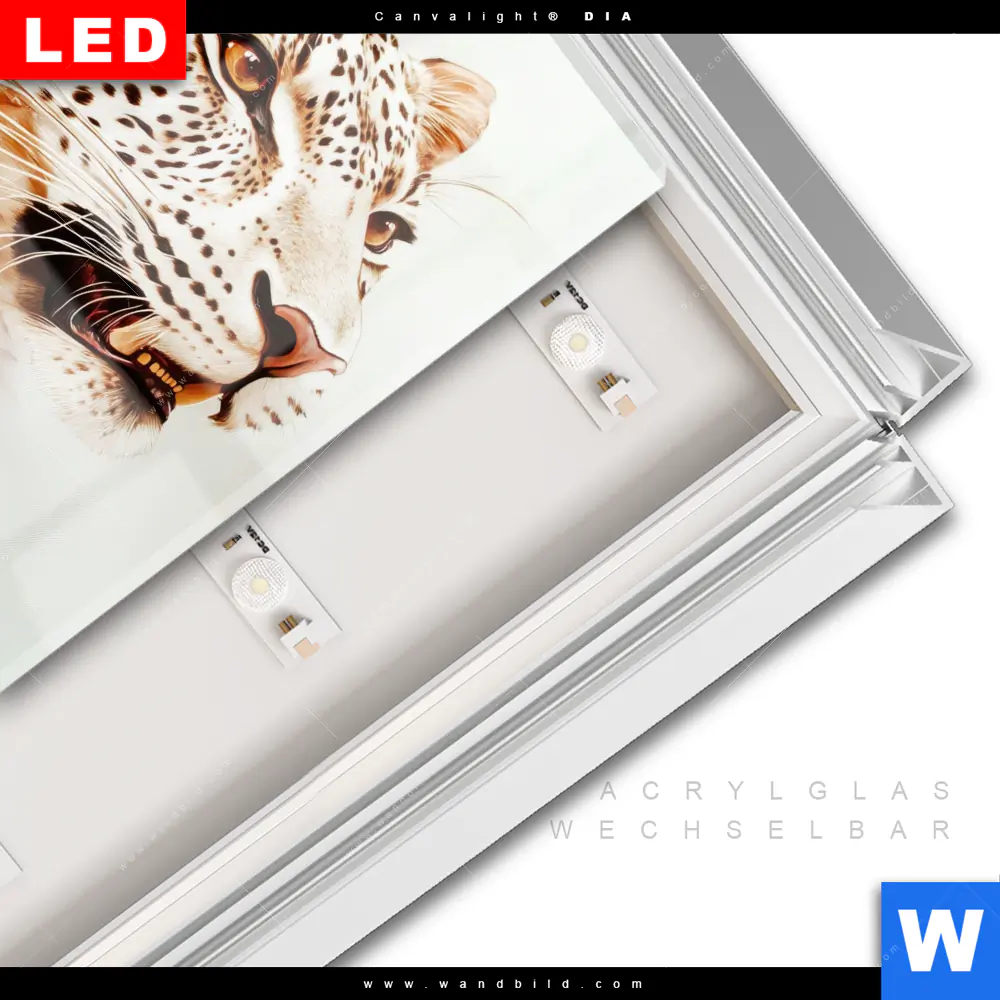 LED-Glasbild mit austauschbarem Acrylglas-Druck (Wechselbild)