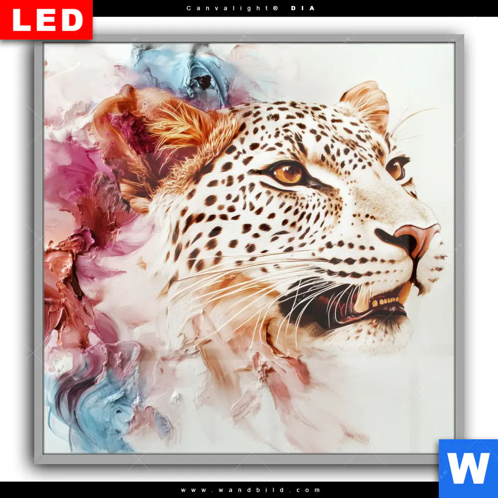 Canvalight® DIA Leuchtbild | Leopard in Farbexplosion | Quadrat