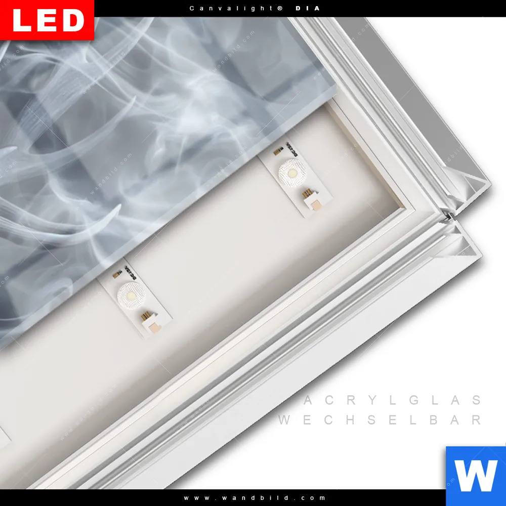 LED-Glasbild mit austauschbarem Acrylglas-Druck (Wechselbild)