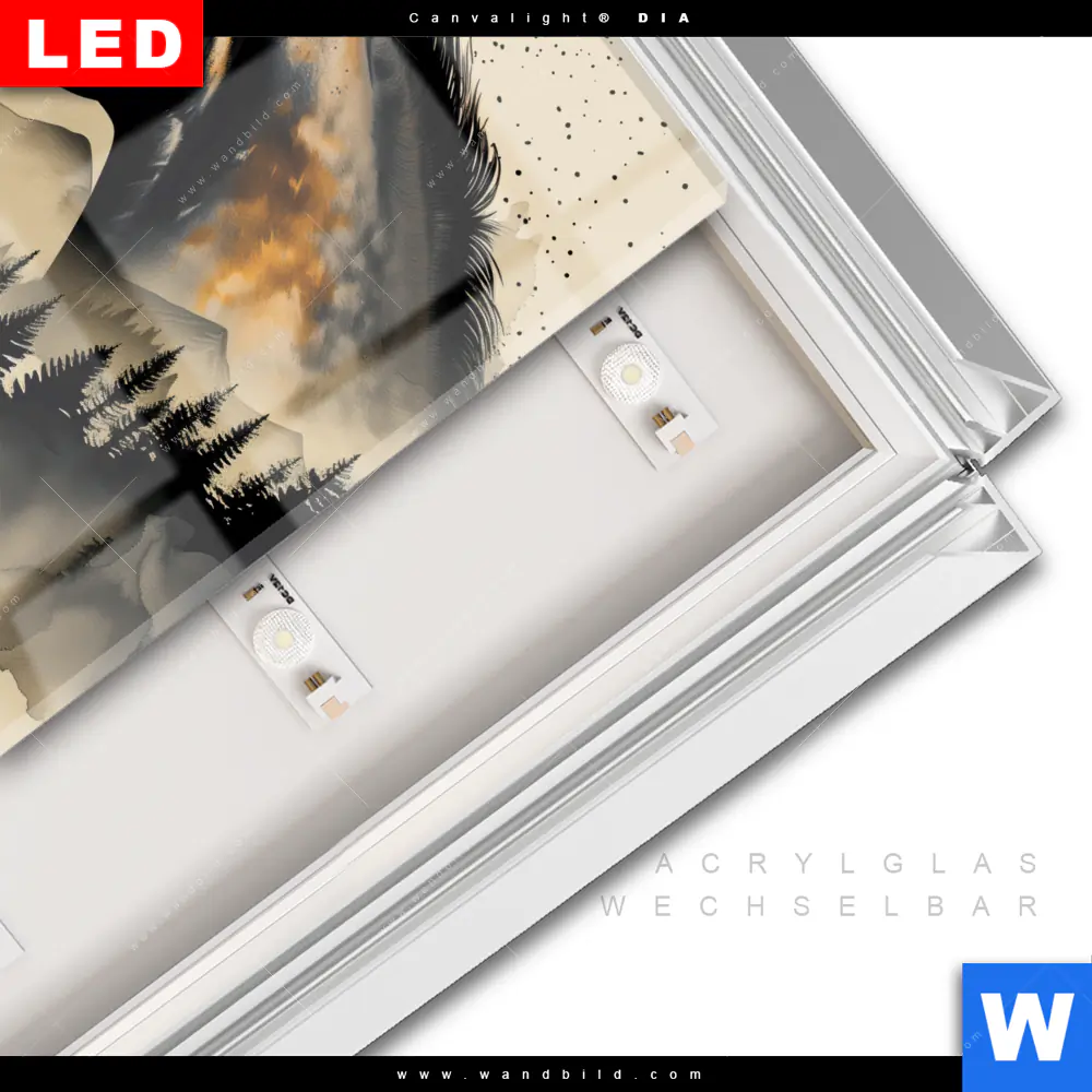LED-Glasbild mit austauschbarem Acrylglas-Druck (Wechselbild)