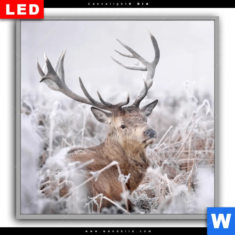 Canvalight® DIA Leuchtbild | Rothirsch im Winter | Quadrat