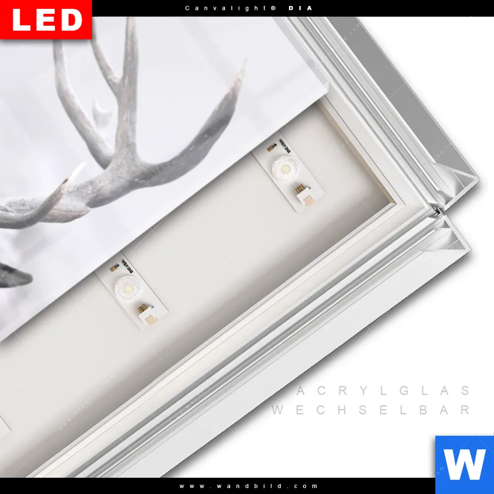 LED-Glasbild mit austauschbarem Acrylglas-Druck (Wechselbild)