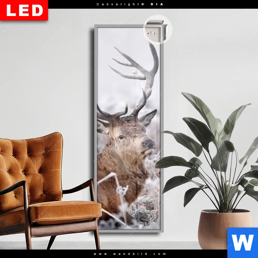Canvalight® DIA Leuchtbild | Rothirsch im Winter | Schmal