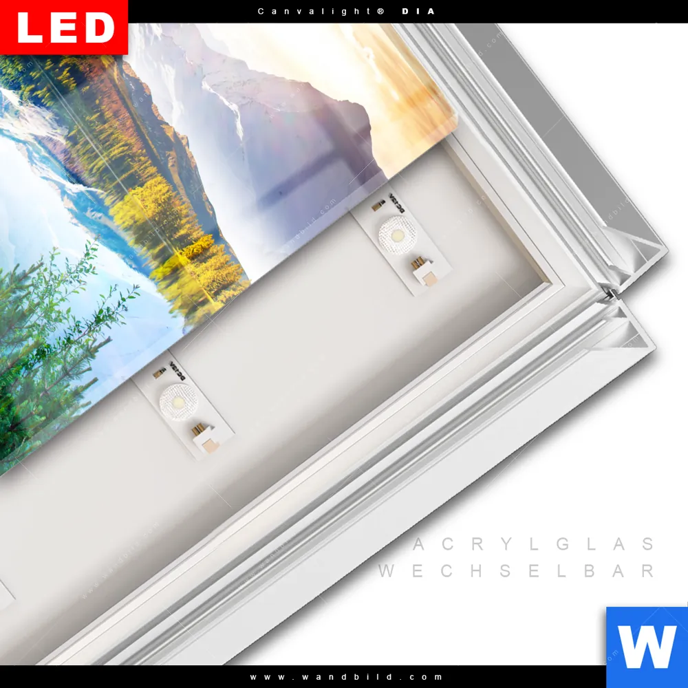 LED-Glasbild mit austauschbarem Acrylglas-Druck (Wechselbild)