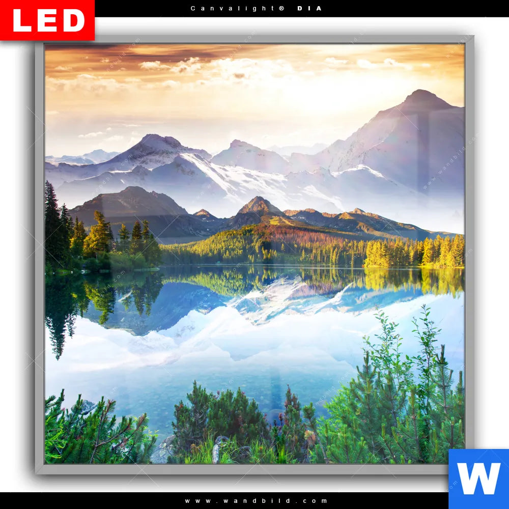 Canvalight® DIA Leuchtbild | Sonniger Tag am Bergsee | Quadrat