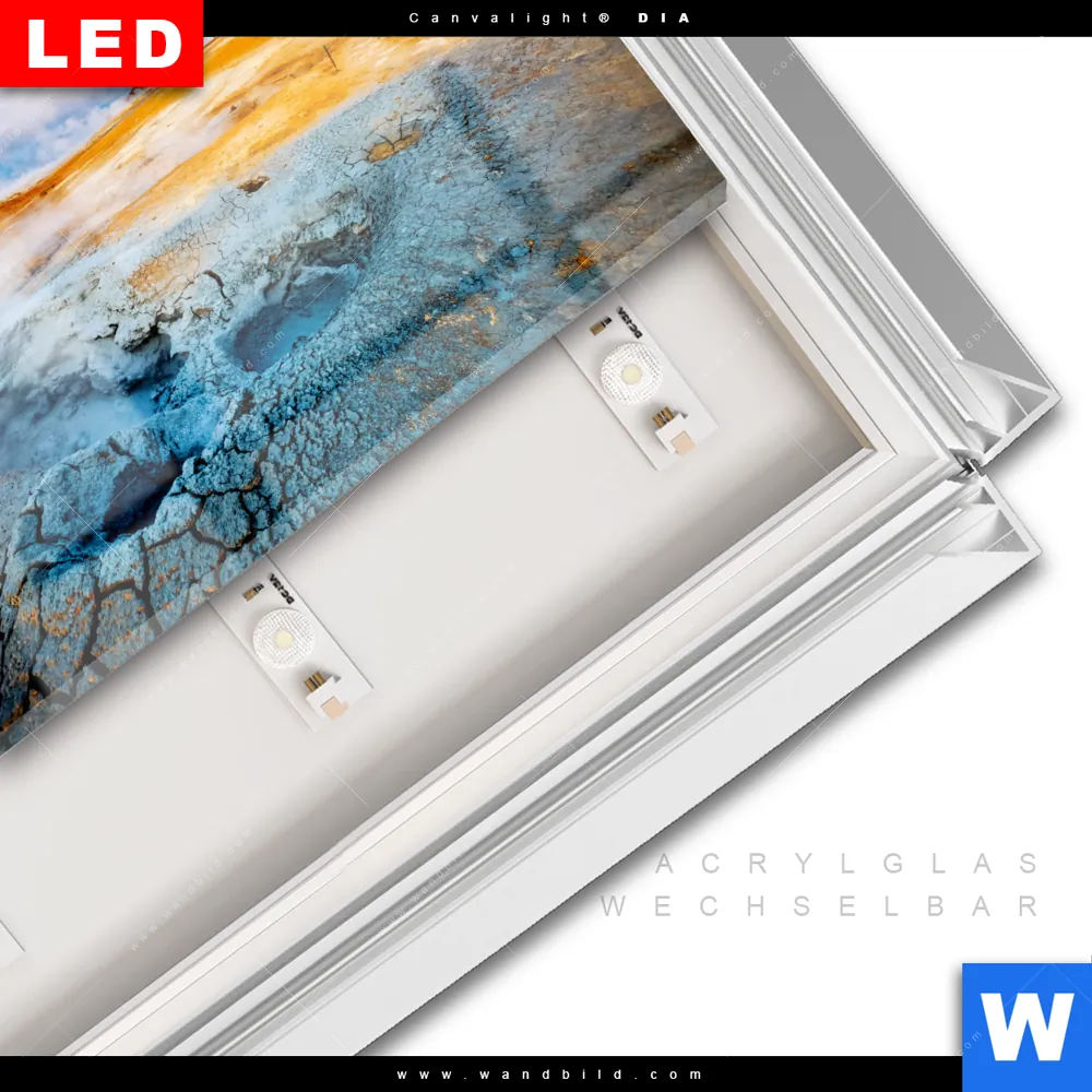 LED-Glasbild mit austauschbarem Acrylglas-Druck (Wechselbild)